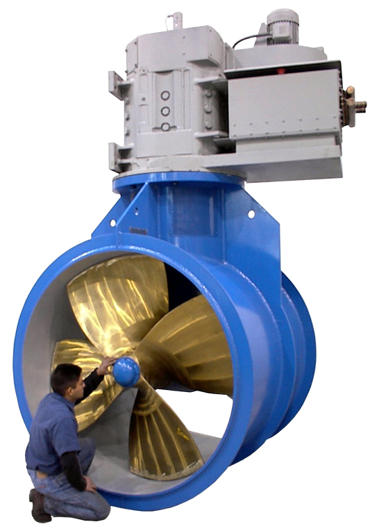 Axial flow water jets from 100kW to 6,400 kW available in 15 model sizes to accommodate vessels from 6m to +60m with stainless steel jets supported by electronic controls.
